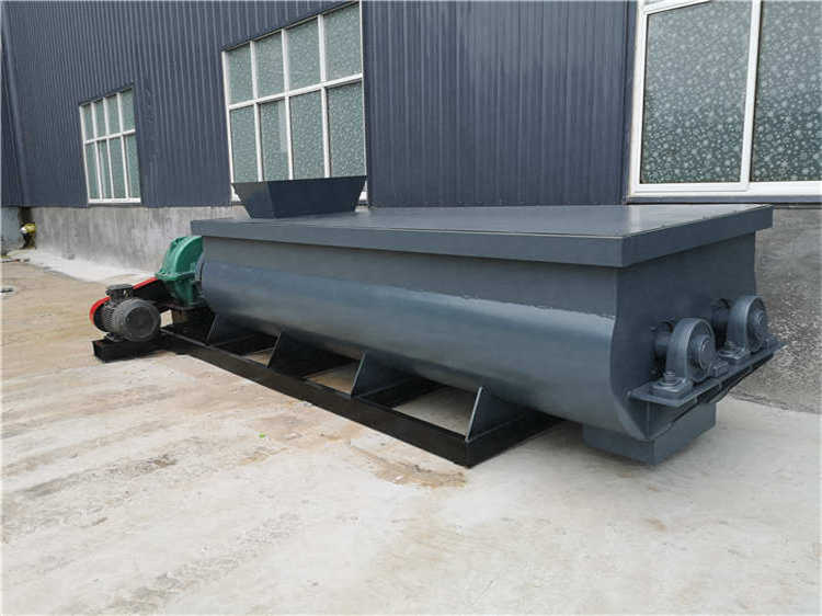 有機(jī)肥雙軸攪拌機(jī)攪拌區(qū)域內(nèi)裝有旋轉(zhuǎn)反向的漿葉,漿葉成一定角度將物料沿軸向、徑向循環(huán)翻攪,使物料迅速混合均勻。主要用于預(yù)加水成球工藝流程中,當(dāng)定量的生料粉由下料口流入攪拌糟中,經(jīng)若干個(gè)具有一定壓力的水霧