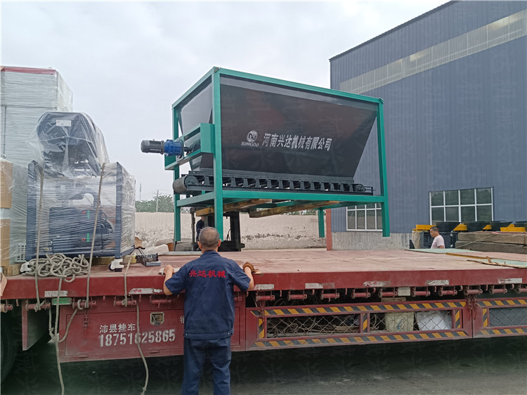 內蒙客戶定制有機肥鏟車料倉,雙機粉碎機發(fā)貨現場